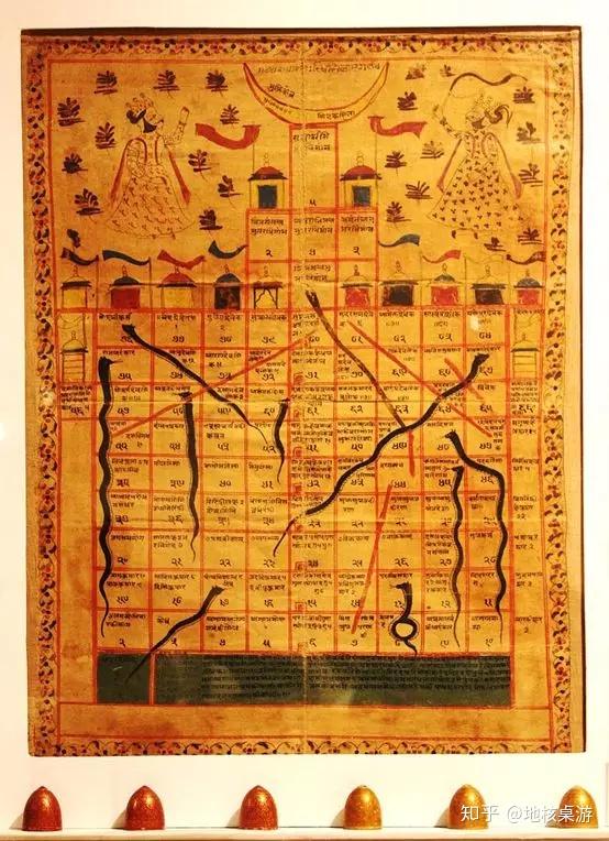 这种游戏与上面讲到的那类游戏不同,这是一场纯粹的运气游戏,其中梯子代表美德,蛇代表恶习,终点代表着精神的升华,这是一场关于人生旅程的模拟,充满了印度教因果报应(Karma and Moksha)的哲学思想,强调一个人在世上生活的根本是命运,而不是技巧之类的。